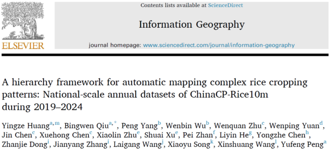 邱炳文团队创新水稻年度种植模式一张图,夯实南方复杂种植区农业数据底座 近期,福州大学数字中国研究院(福建)邱炳文研究员团队在信息地理学领域重要刊物《Information Geography》上发表“A hierarchy framework for automatic mapping complex rice cropping patterns: National-scale annual datasets of ChinaCP-Rice10m during 2019–2024”,创新水稻年度种植模式一张图,夯实南方复杂种植区农业数据底座。 确保国家粮食安全是我国农业发展的首要任务。水稻作为最重要的口粮作物,及时、准确掌握全国水稻种植分布信息,对维护粮食安全具有重要意义。然而,作物光谱时空异质性大、识别算法迁移能力有限、训练样本依赖性强等因素,制约了高精度水稻遥感制图的能力提升。尤其是在复杂多熟制种植区,现有水稻识别算法精度不足,水旱轮作区域存在明显漏分现象。 针对上述问题,福州大学邱炳文研究员团队提出了一种面向复杂水稻种植模式的多层次自动识别框架FAMR,通过耦合农田管理措施与作物冠层结构信息,综合利用哨兵一号与哨兵二号时序遥感数据,实现了全国水稻种植模式高精度识别。构建了2019–2024年全国10米分辨率年度水稻种植模式分布数据集,总体识别精度超过90%。ChinaCP-Rice10m数据集全面揭示了水旱轮作在我国南方多熟制种植区的重要性。 该成果可有力支撑耕地种植用途的快速精准监测,助力“农业农村用地一张图”建设,为智慧农业行动计划和新一轮农业资源区划等国家战略实施提供技术方法和科学数据支撑。 Huang, Y., Qiu, B., Yang, P., Wu, W., Zhu, W., Yuan, W., Chen, J., Chen, X., Zhu, X., Xu, S., Zhan, P., He, L., Chen, Y., Dong, Z., Zhang, J., Wang, L., Song, X., Wang, X. & Peng, Y. (2026) A hierarchy framework for automatic mapping complex rice cropping patterns: National-scale annual datasets of ChinaCP-Rice10m during 2019–2024. Information Geography, 2, 100033. 该论文通讯作者为福州大学邱炳文研究员,该项成果由数字中国研究院(福建)教师邱炳文研究团队与中国农科院农业资源与农业区划研究所、北京师范大学、北京市农林科学院、河南省农科院、福建省耕地保护中心等单位合作研发。该研究获得国家自然科学基金(42571395、42171325,41771468)、福建省科技厅项目(2023Y0042)等项目资助。 附论文等相关成果链接 论文成果链接: https://www.sciencedirect.com/science/article/pii/S3050520825000338 https://www.researchgate.net/profile/Bingwen-Qiu http://adcfj.cn/sirc/door/team/TeacherList/Detail?personId=431 下一条:数字中国研究院李蒙蒙团队在IEEE TGRS顶刊发表研究成果